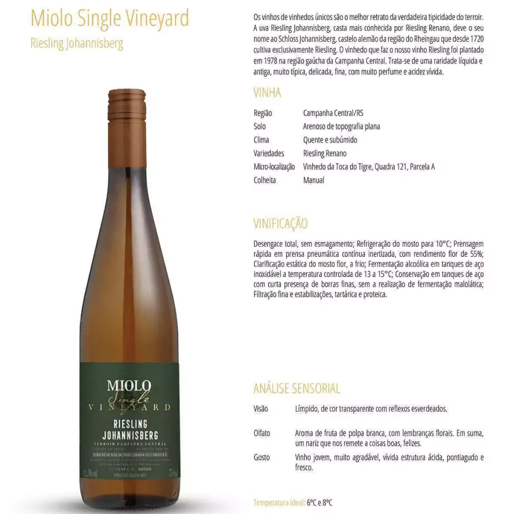 - Vinho Miolo Single Vineyard Branco Riesling 750ml